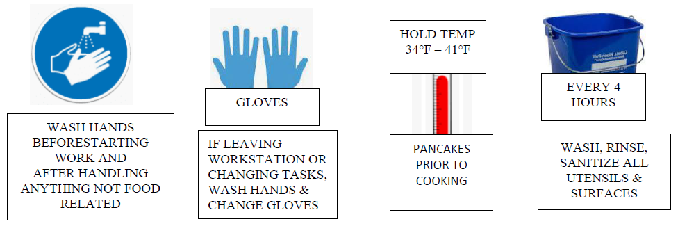 | Pancakes | Freezer | Cooler | 24 hours | 120°F | Cook to Order | |