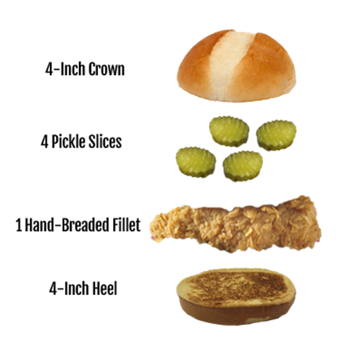 - Pickles: Use fingers to place 4 pickles on the filet. Do not overlap.